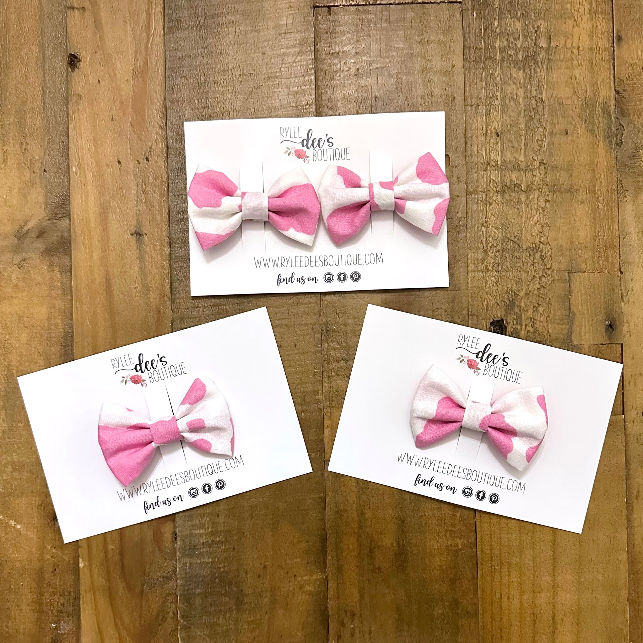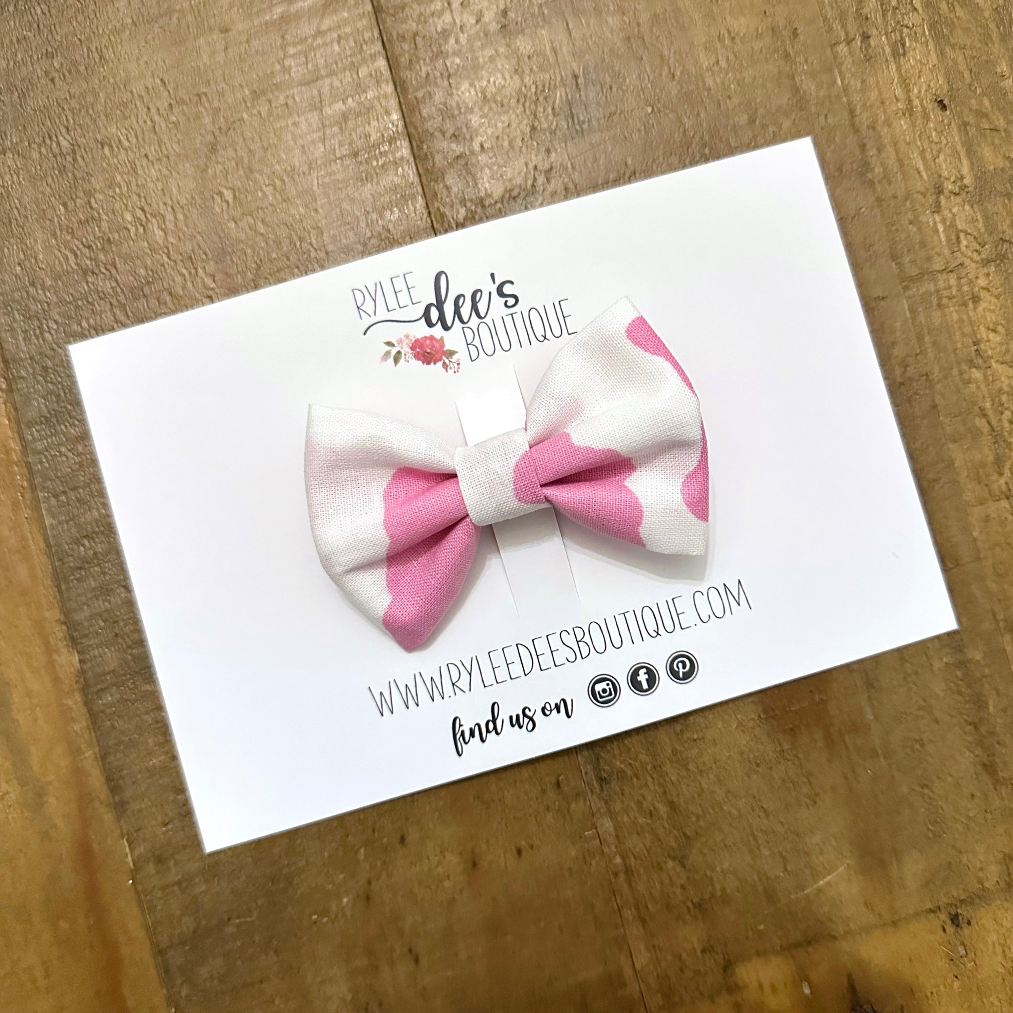 You can’t go wrong with this pink cow print bow. In crisp white with bold bubblegum-pink cow spots, this piece is made for twirling, giggling, and serving up all the barnyard sass. Pair it with sandals in the summer, sweaters in the fall, or boots for that farm-chic vibe - keeping this piece great for year round fun.