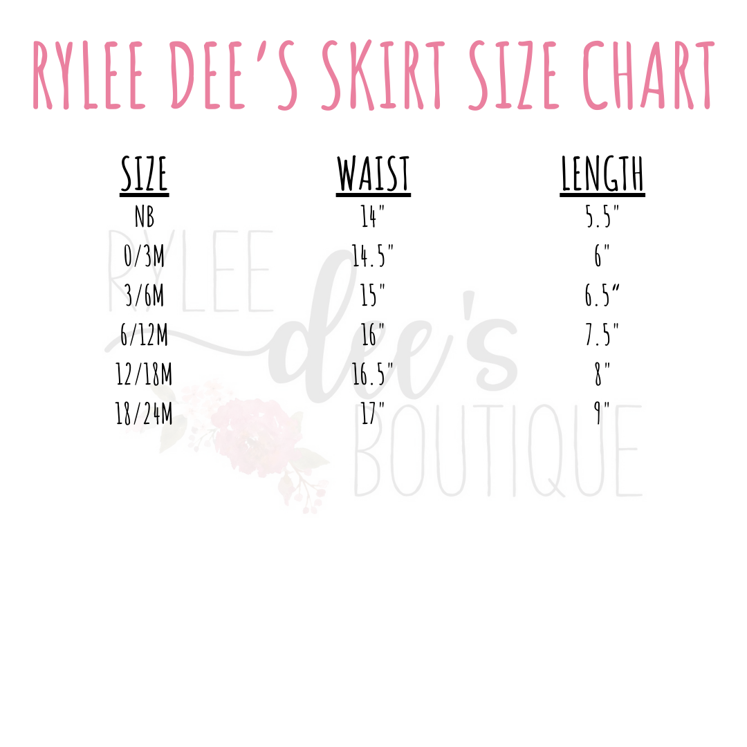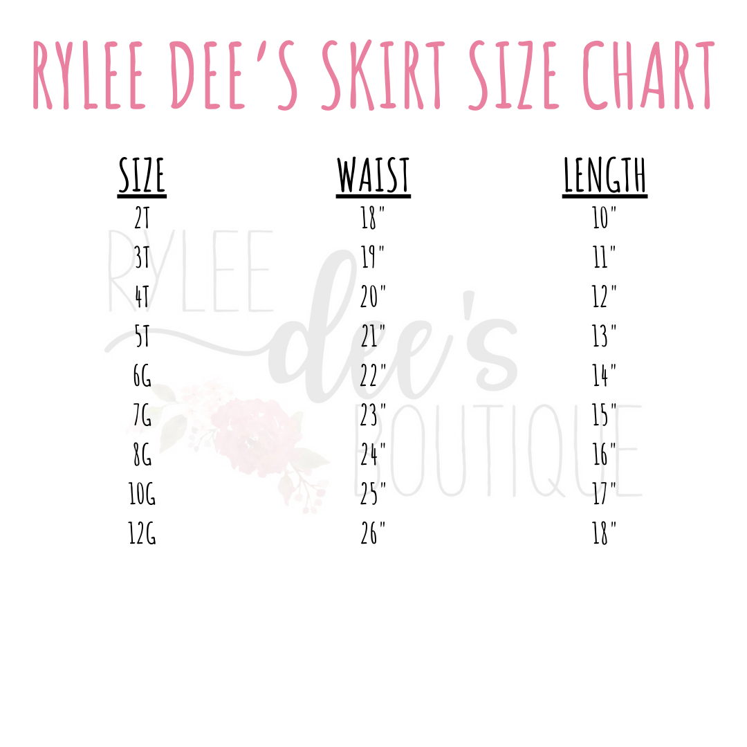 My skirts run true to size & what size she wears in most store bought brands, will fit her in our skirts as well.