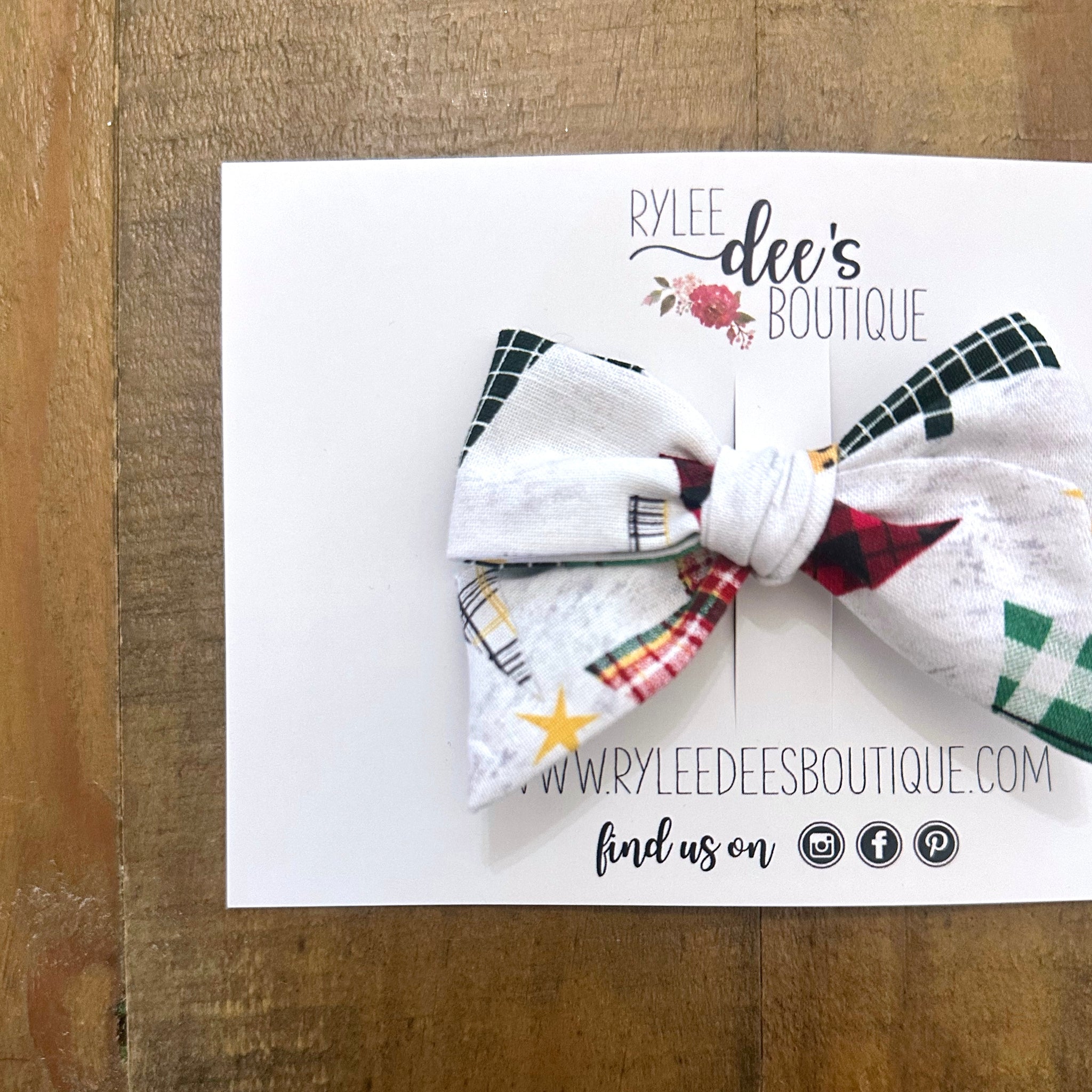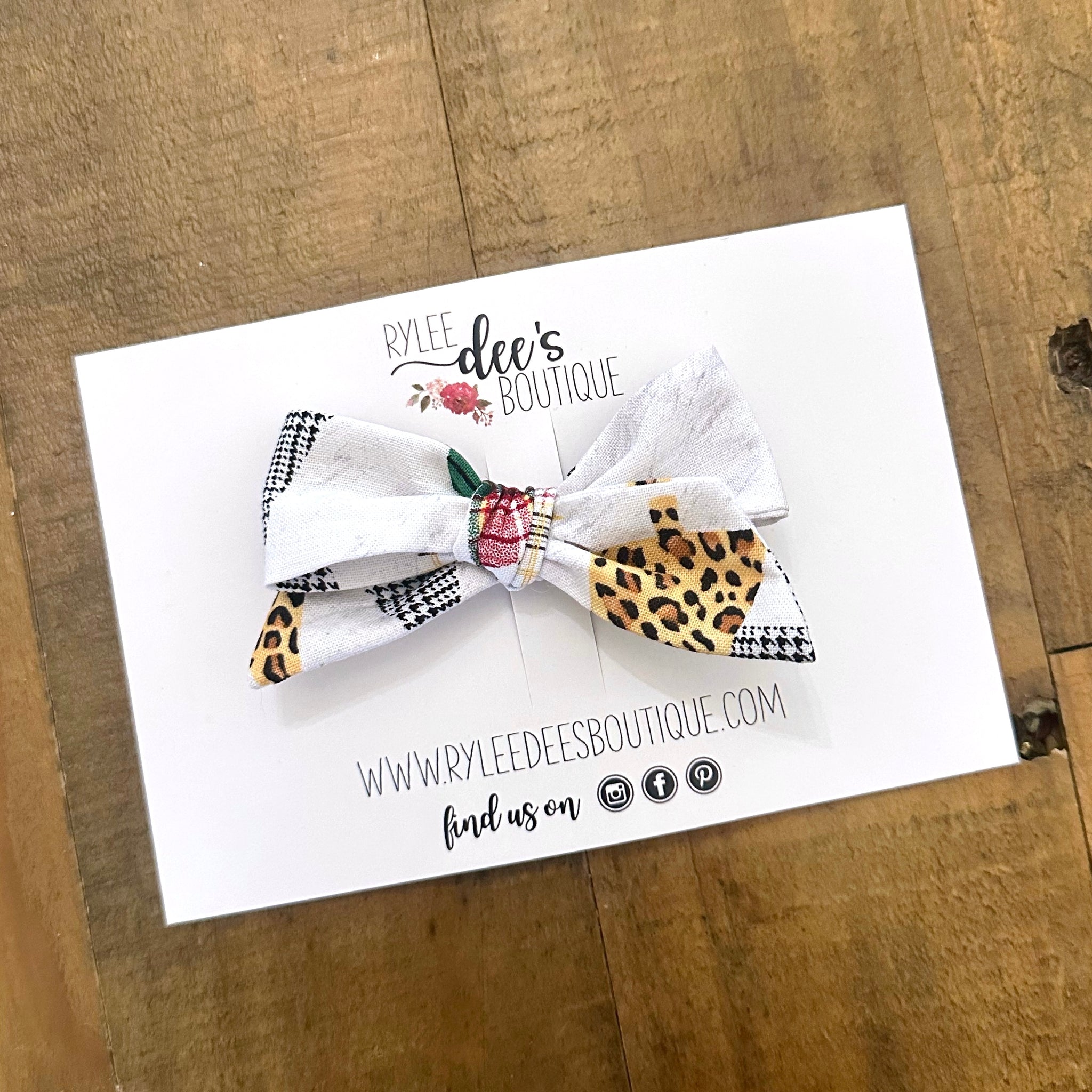 This playful patchwork bow mixes cozy plaids, chic leopard, and festive little details for a look that’s equal parts fun, stylish, and totally unique. It’s the perfect statement bow for mamas who love a little personality in their babe’s outfits.